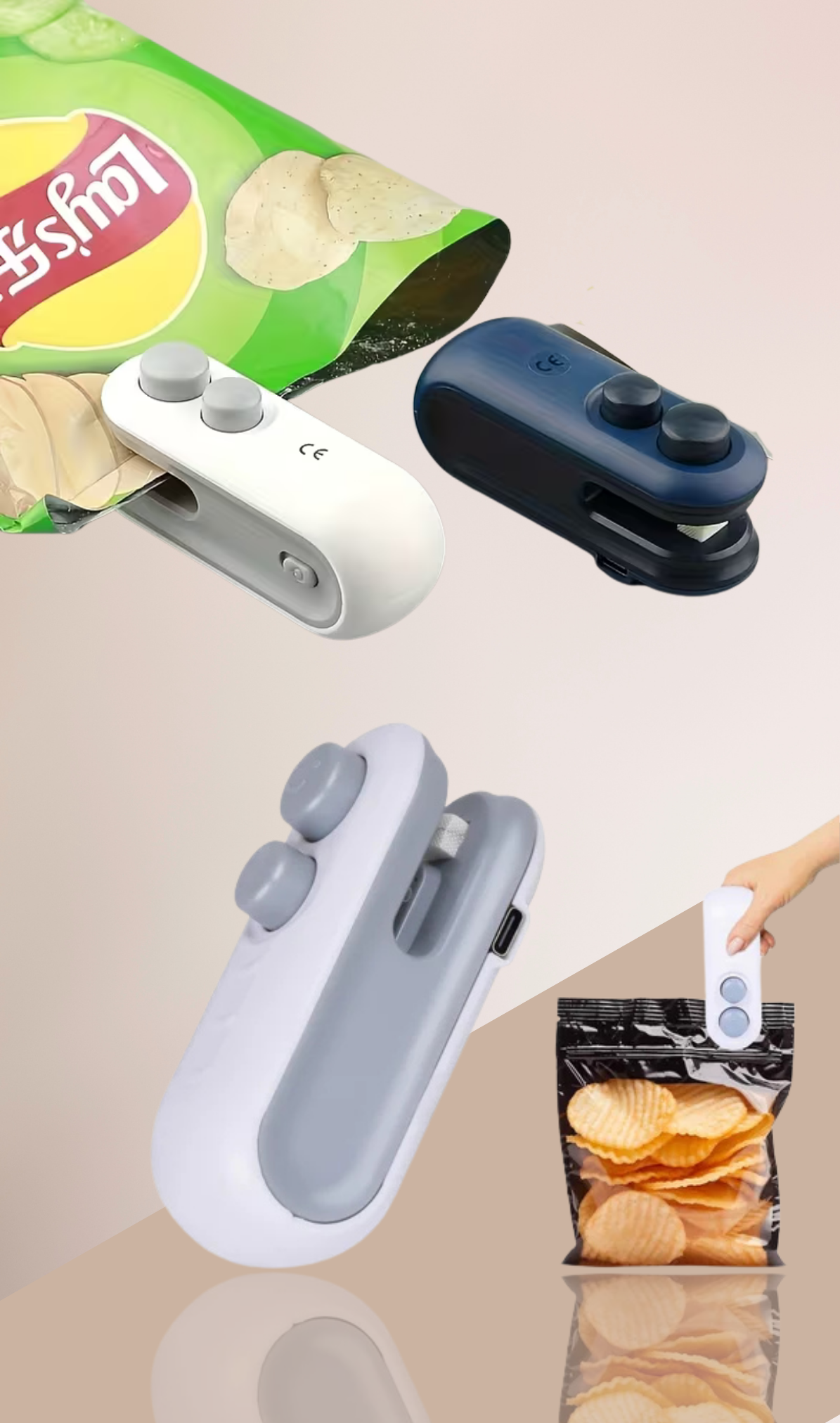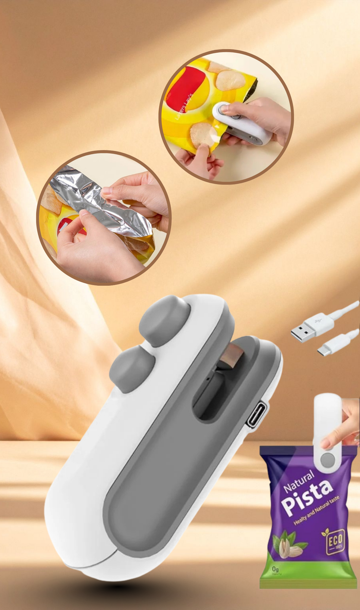 A fast-heating USB sealer that seals bags in seconds, making food storage effortless.