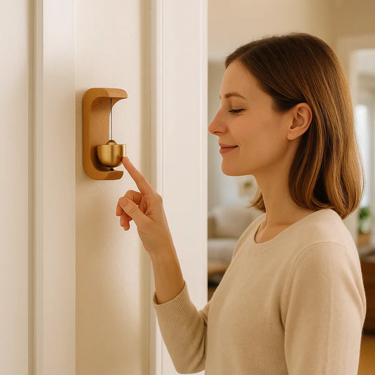 Made from natural raw wood and a premium brass bell, this door chime produces a crisp yet soft sound that feels warm and inviting.